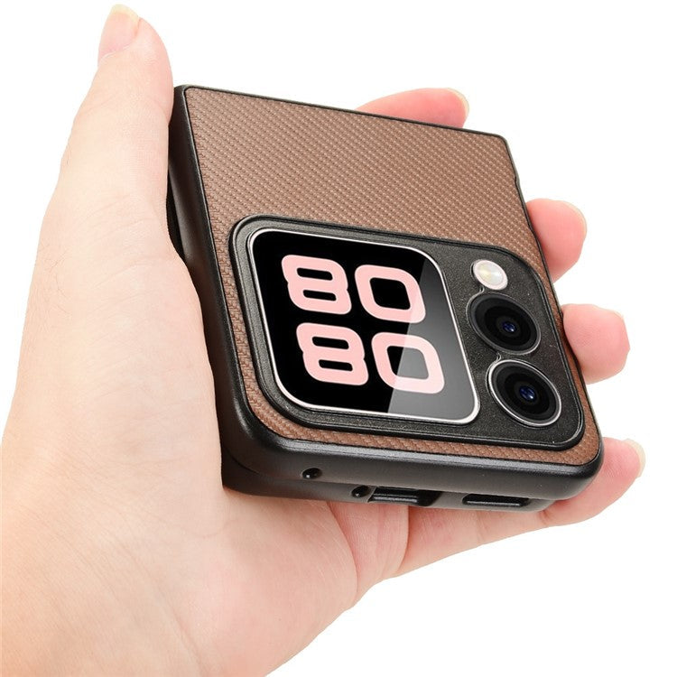 For Huawei nova Flip 5G Case Carbon Fiber Texture Shockproof PU+PC Phone Cover - Brown