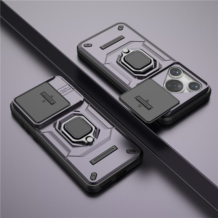 For Huawei Pura 70 Case PC+TPU Protective Phone Shell with Slide Lens Cover - Purple