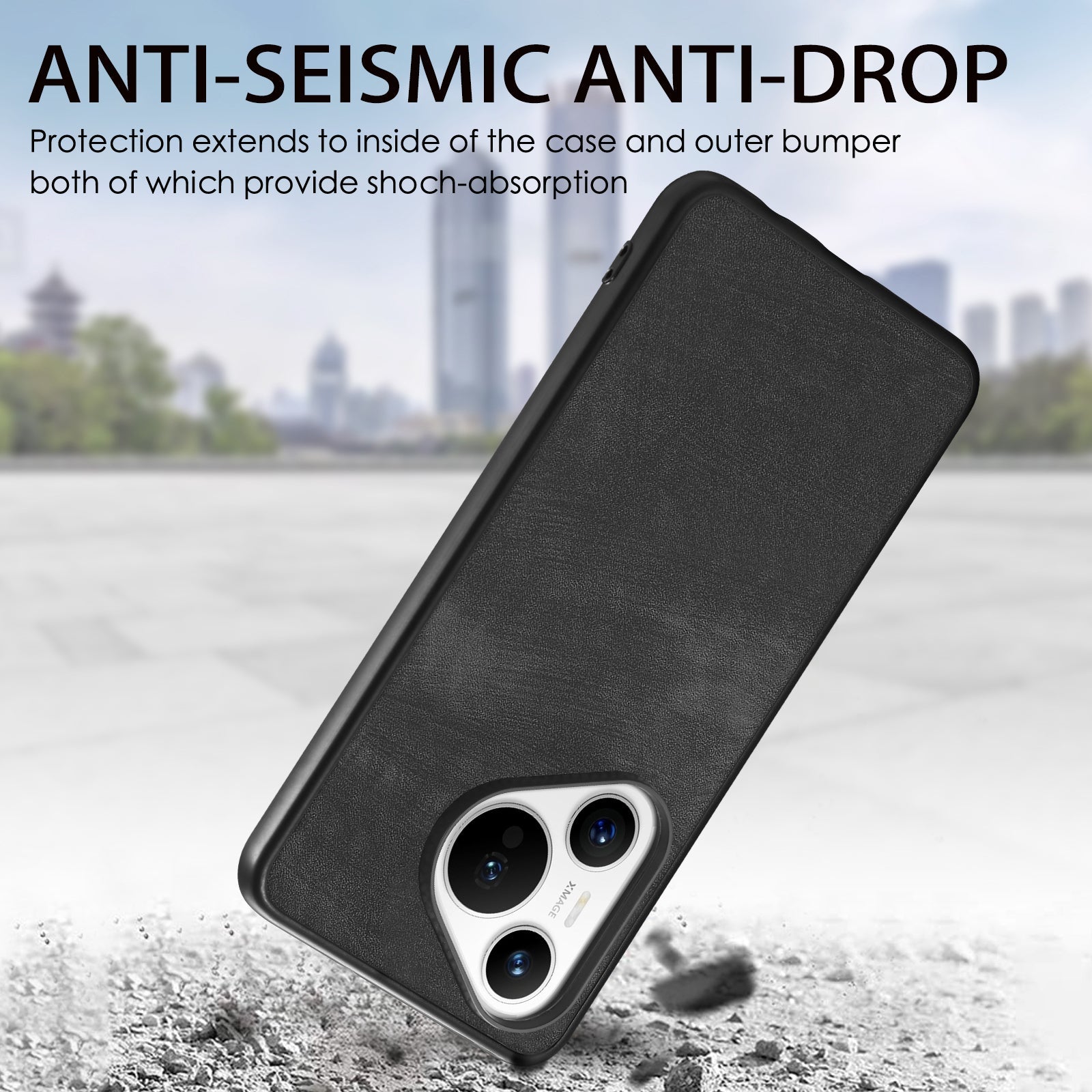 For Huawei Pura 70 Case Shockproof Slim Retro Leather Phone Back Cover - Black