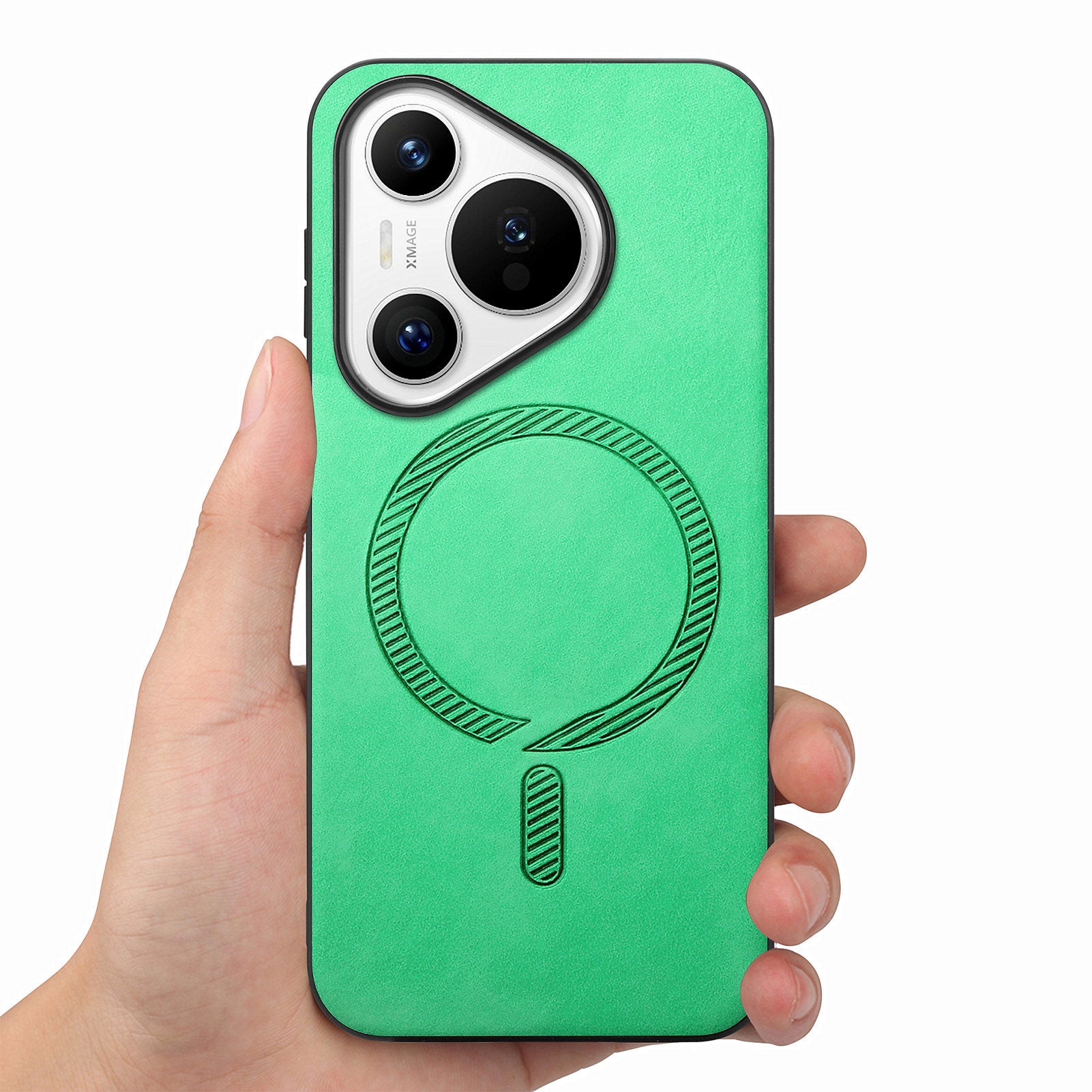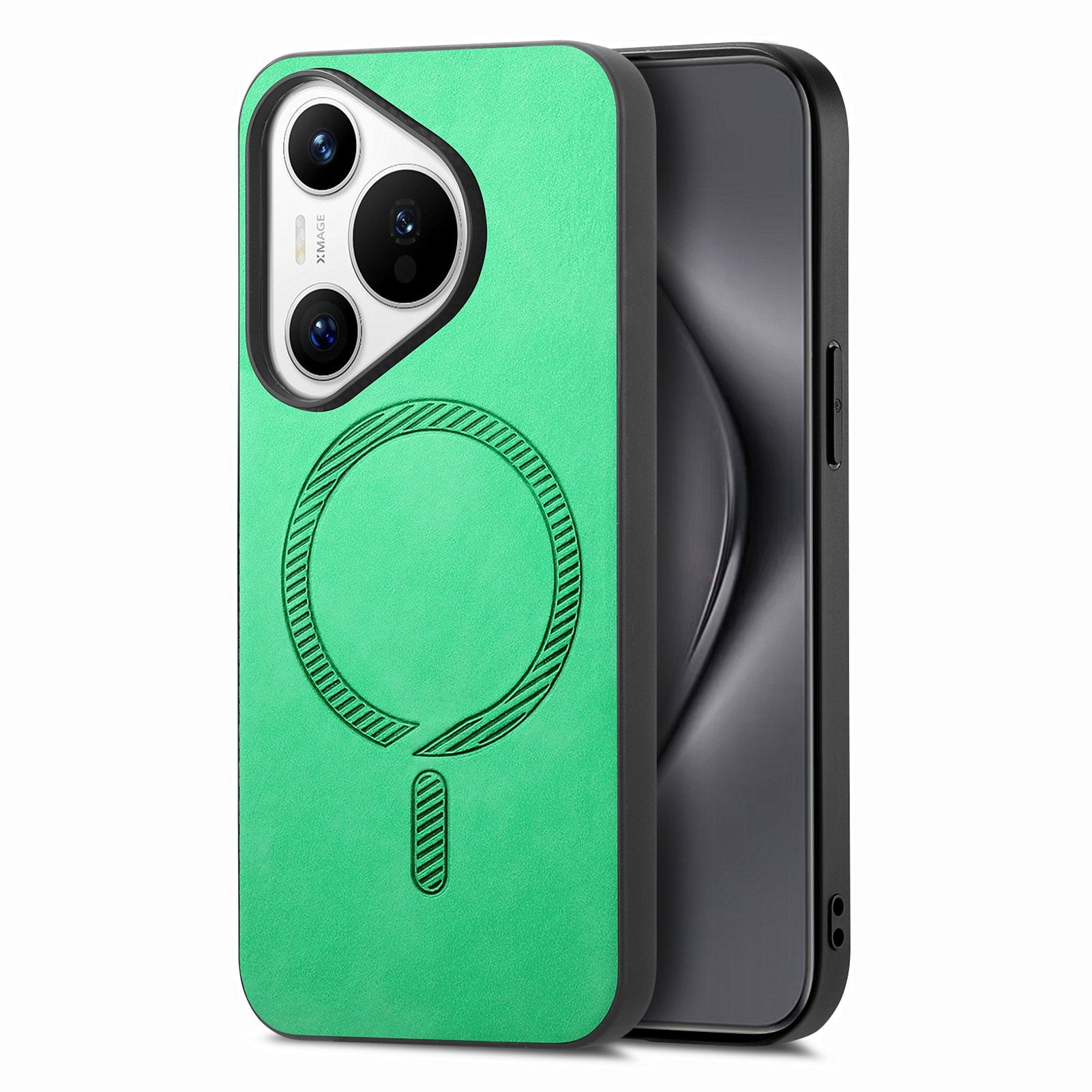 For Huawei Pura 70 Leather Back Case Compatible with MagSafe Skin-touch Phone Cover - Green