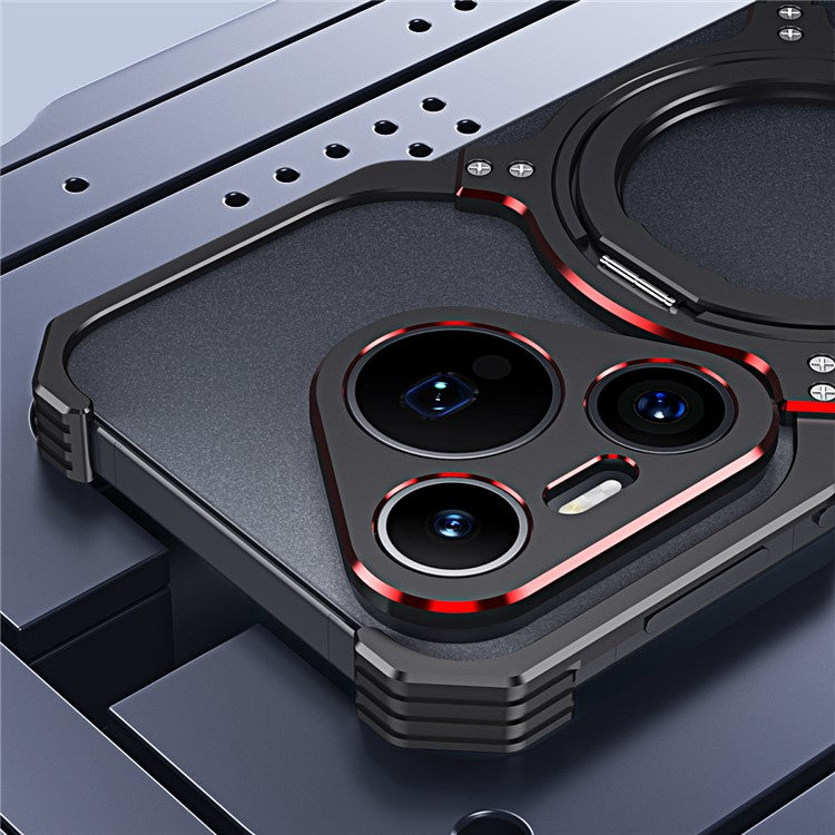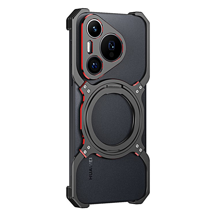 For Huawei Pura 70 Magnetic Case Kickstand Metal Bumper Phone Cover - Black / Red