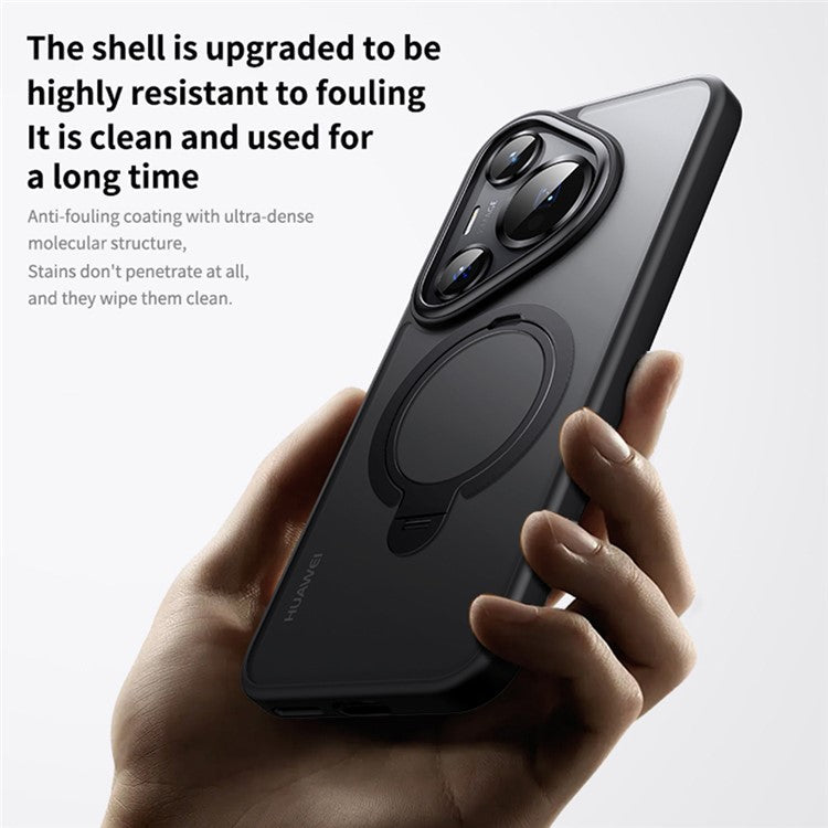 For Huawei Pura 70 Phone Case Kickstand Matte Back Cover Compatible with MagSafe - Black
