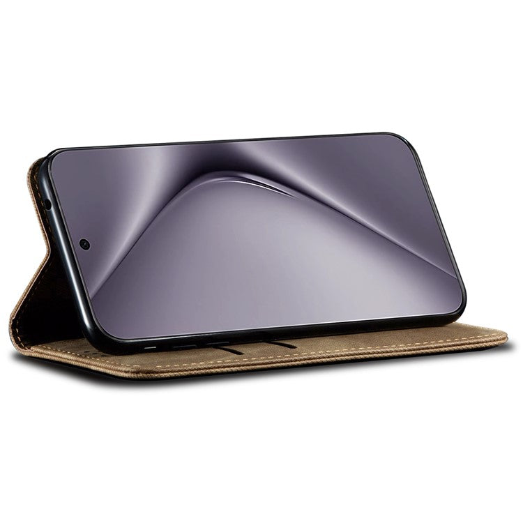 For Huawei Pura 70 Ultra Case Jeans Cloth Texture Flip Leather Phone Cover - Khaki