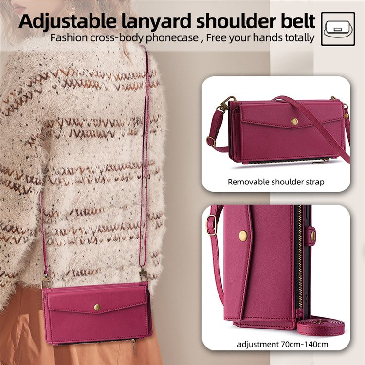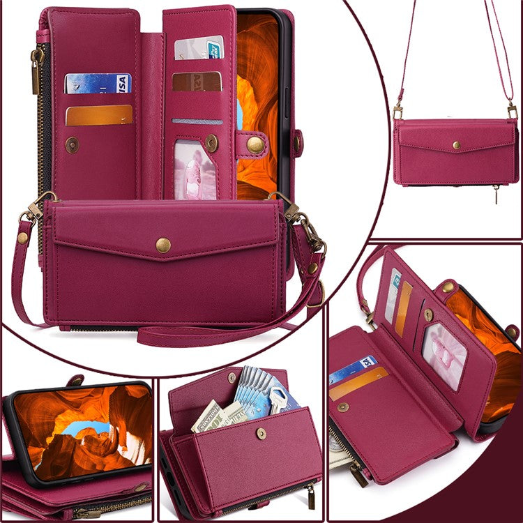 For Huawei Pura 70 Ultra Cell Phone Case Zipper Pocket Leather Wallet Stand Cover with 2 Straps - Red