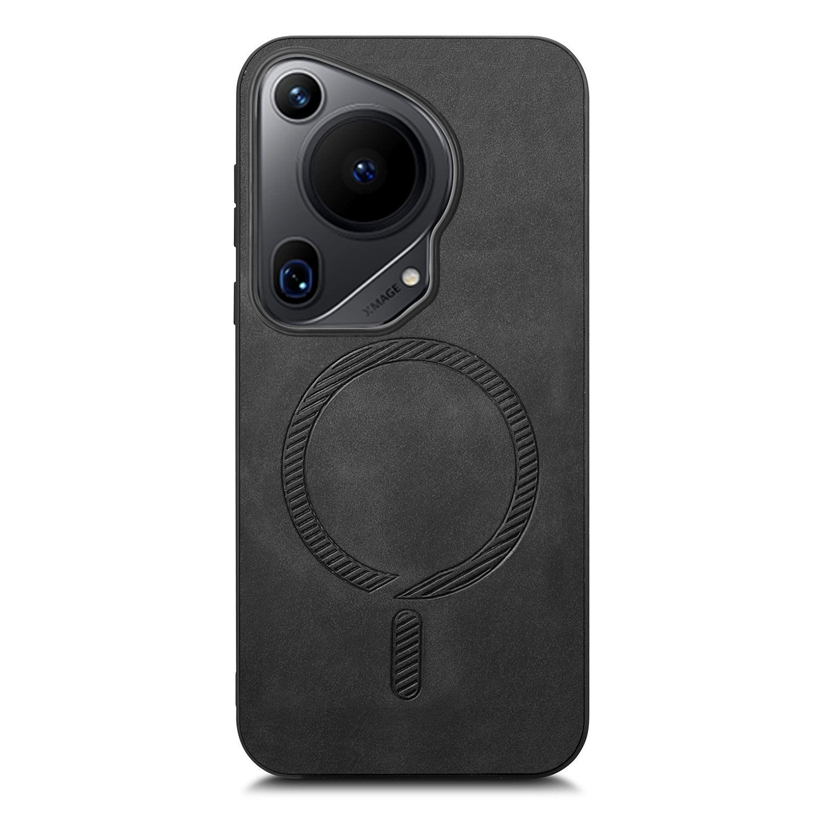 For Huawei Pura 70 Ultra Leather Back Case Compatible with MagSafe Skin-touch Phone Cover - Black