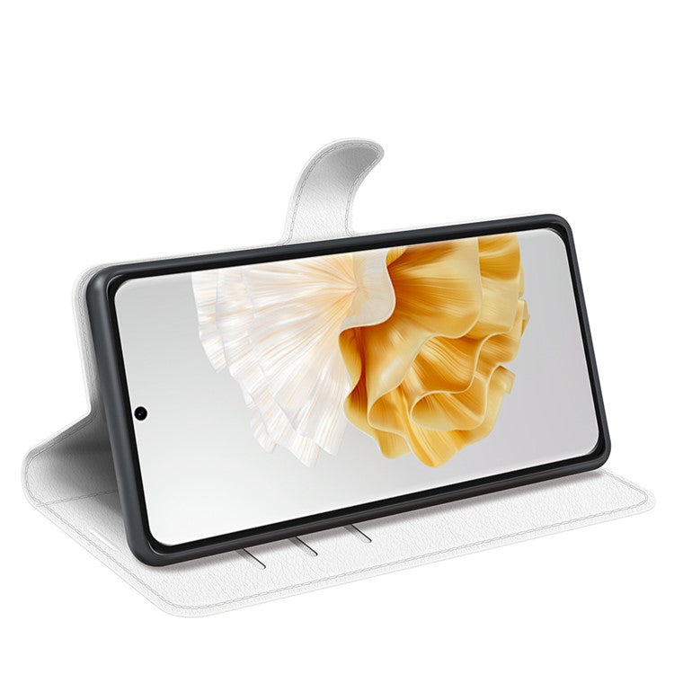 For Huawei Pura 70 Wallet Case with Card Holder Litchi Texture Leather Phone Cover - White