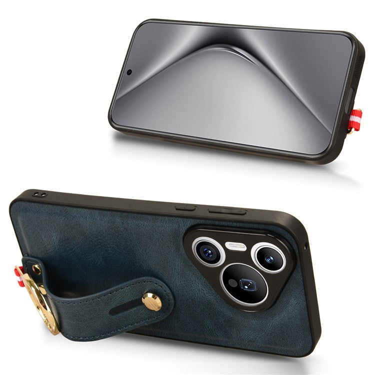 For Huawei Pura 70 Wristband Kickstand Case Fall Proof Phone Cover with Bottle Opener Ring - Blue