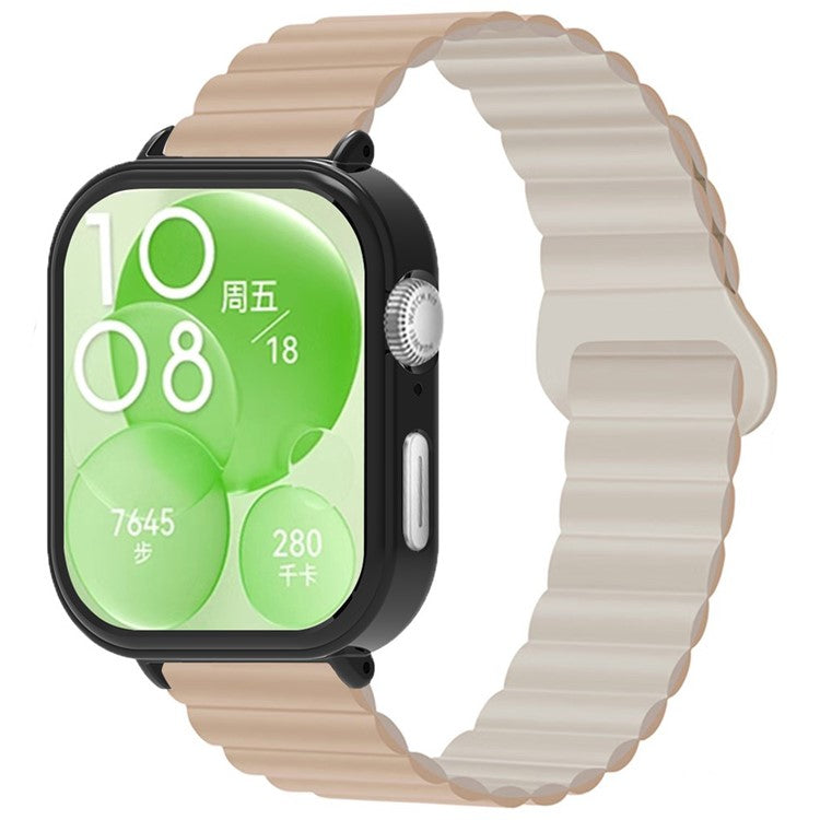 For Huawei Watch Fit 3 Silicone Strap Magnetic Watch Band with Black PC Watch Case - Milk Tea+Starlight