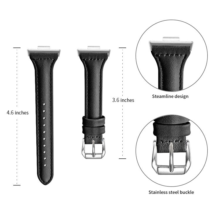 For Huawei Watch Fit 3 Watch Strap Genuine Cow Leather Band Stitching Lines - Black
