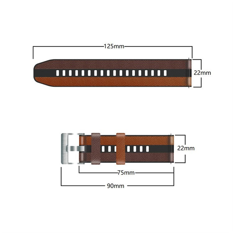 For Huawei Watch GT3/Huami Amazfit GTR3 Three Color Design 22mm Leather Coated Silicone Wrist Band Replacement Smartwatch Strap - Blue/Black