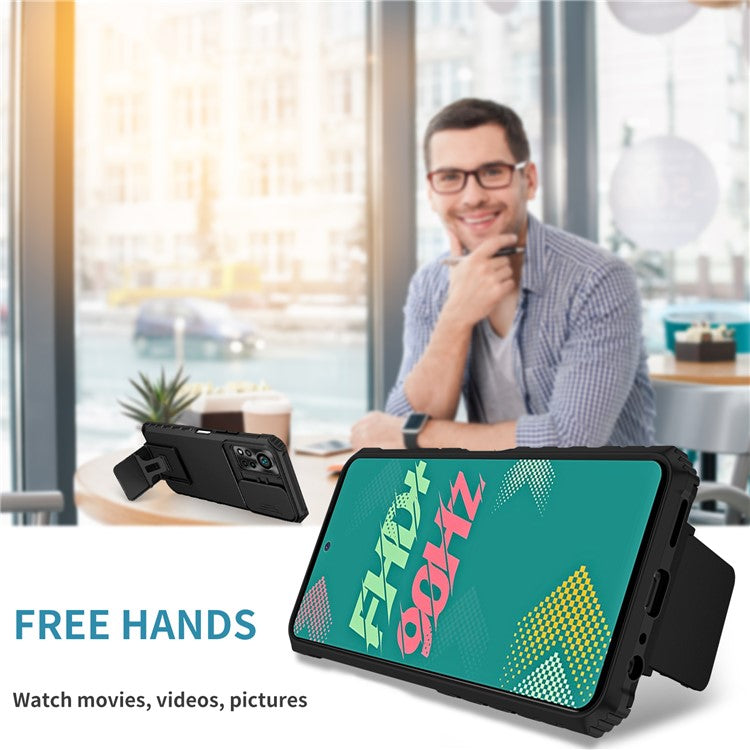 For Infinix Hot 11s NFC 4G Slide Camera Protection Anti-Fall Cell Phone Shell Kickstand PC + TPU Hybrid Cover Phone Case - Black