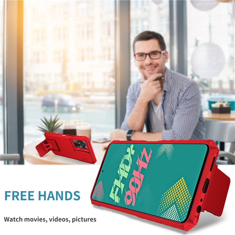 For Infinix Hot 11s NFC 4G Slide Camera Protection Anti-Fall Cell Phone Shell Kickstand PC + TPU Hybrid Cover Phone Case - Red