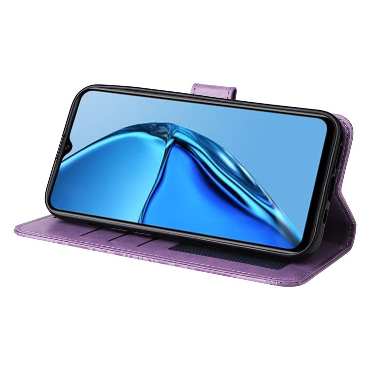 For Infinix Hot 20S 4G PU Leather Sunflower Imprinted Smartphone Case Stand Wallet Cover with Hand Strap - Purple