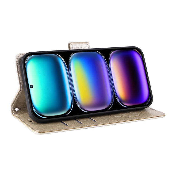 For Infinix Hot 50 Pro+ 4G Leather Case Butterfly Floral Imprint Wallet Stand Cover - Gold