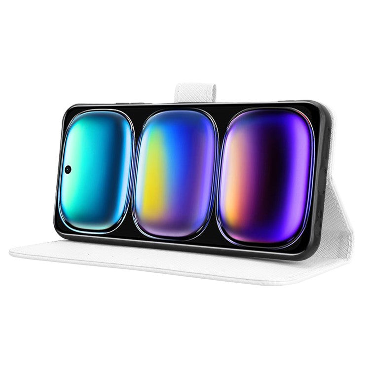 For Infinix Hot 50i 4G X6531 / Smart 9 4G X6532 Case PU Leather Diamond Texture Wallet Phone Cover - White