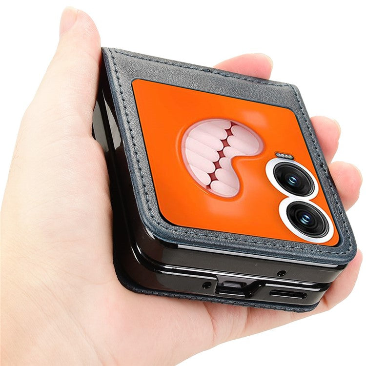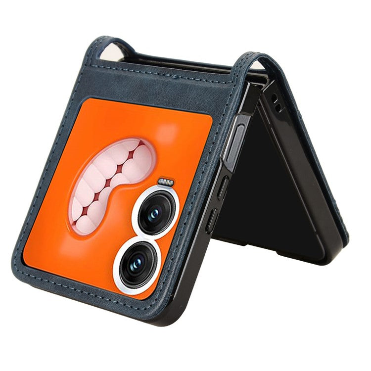 For Infinix Zero Flip 5G X6962 Case Retro Texture Leather+PC Phone Cover with Card Slot - Blue