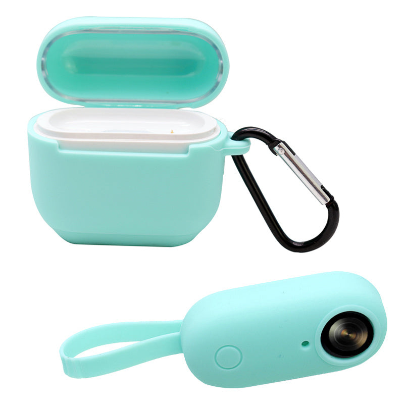 Uniqkart for Insta360 GO Anti-drop Camera Protective Cover Soft Silicone Case with Charging Case Silicone Cover and Carabiner - Light Green