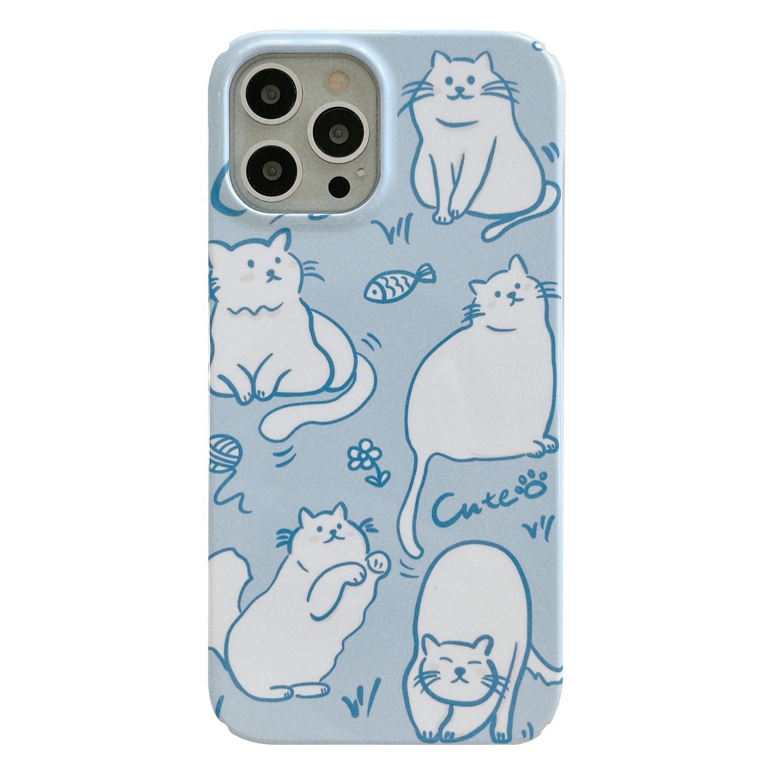 Uniqkart for iPhone 12 Pro Max 6.7 inch Hard PC Phone Case Pattern Printing Protective Glossy Phone Shell - Cute Cats