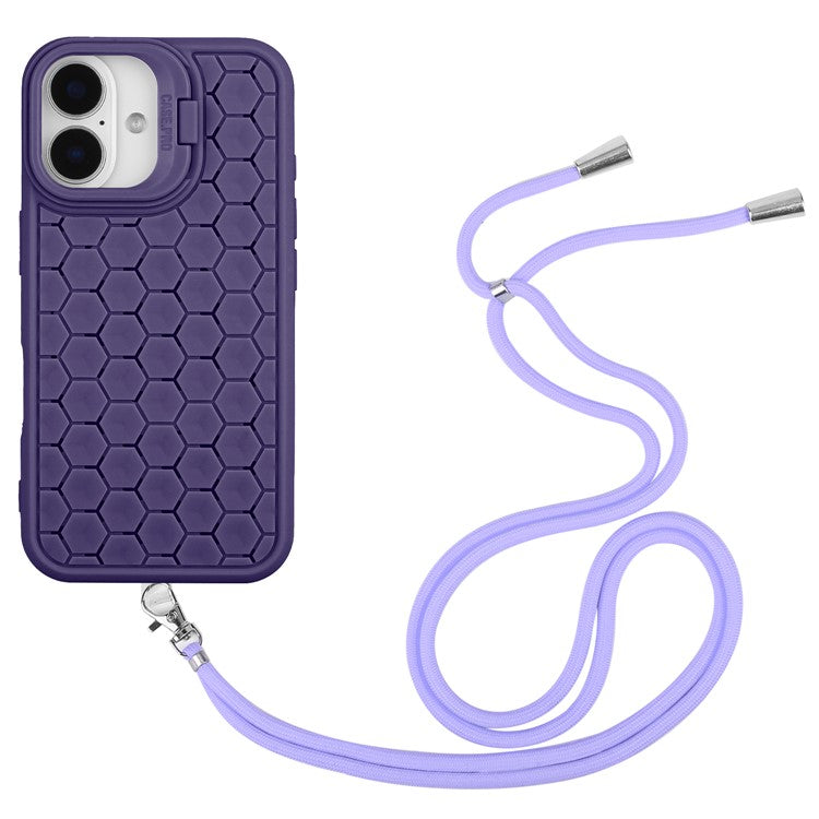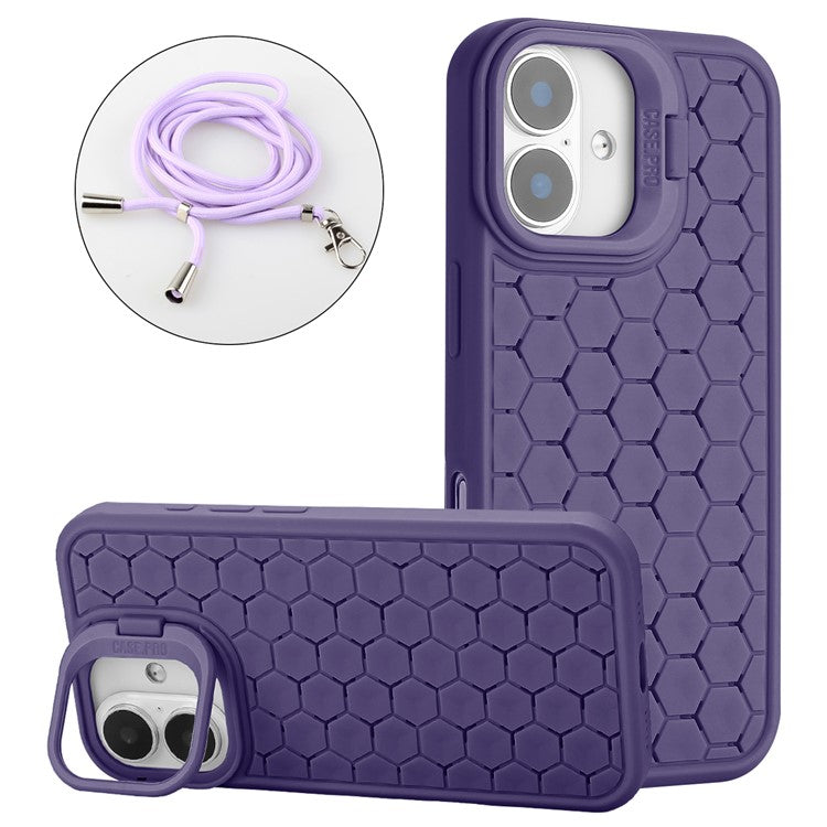 For iPhone 16 Case Compatible with MagSafe Kickstand Heat Dissipation TPU Phone Cover with Lanyard - Purple