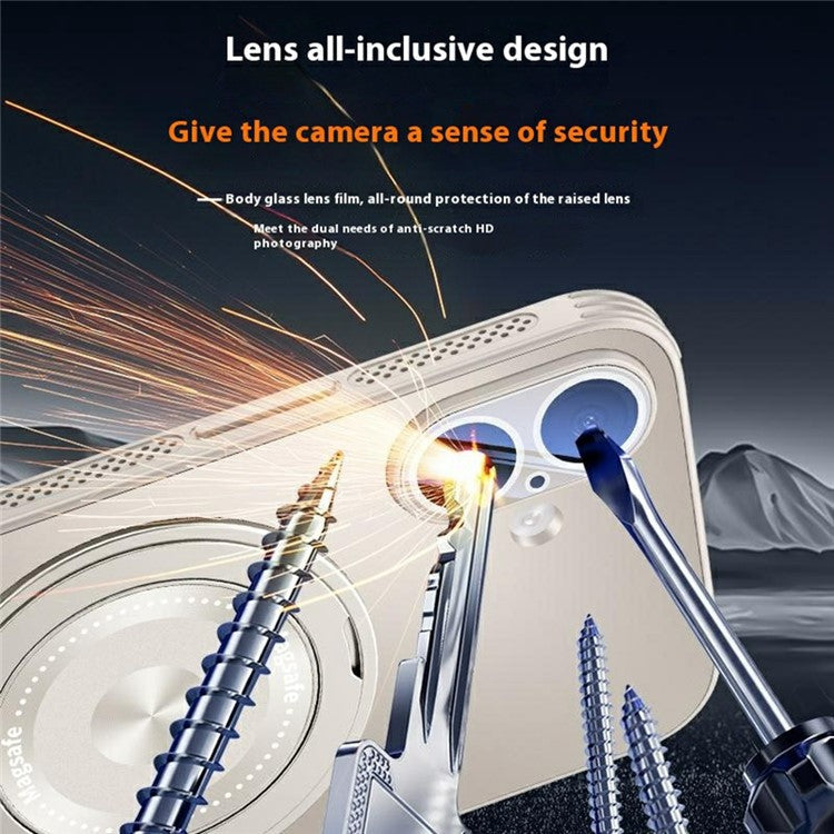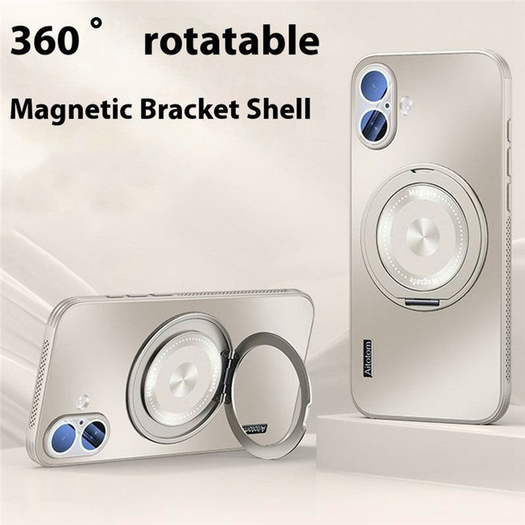 For iPhone 16 Case Compatible with MagSafe Kickstand TPU+PC Heat Dissipation Phone Cover - Gold