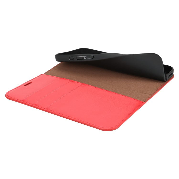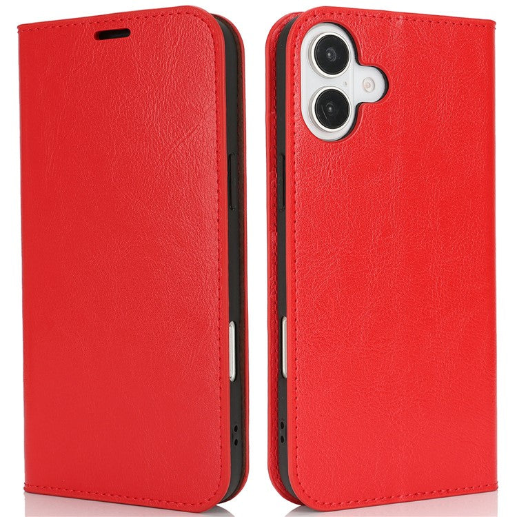 For iPhone 16 Case Crazy Horse Texture Split Leather Wallet Phone Cover - Red