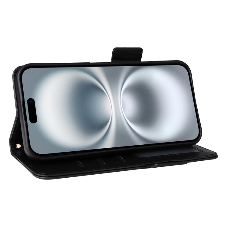 For iPhone 16 Case Litchi Texture PU Leather Wallet Flip Phone Cover - Black