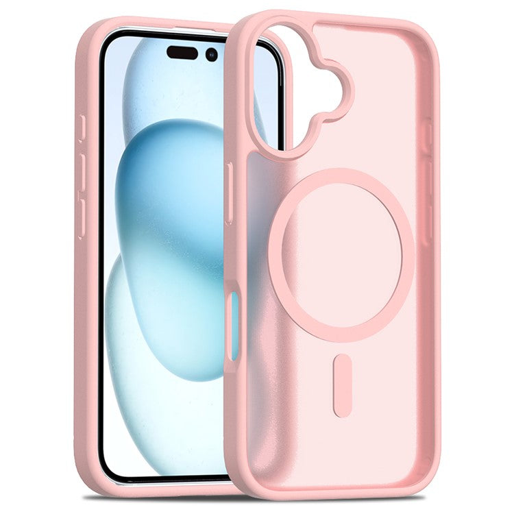 For iPhone 16 Compatible with MagSafe TPU Frame Acrylic Back Phone Cover Skin Touch - Pink