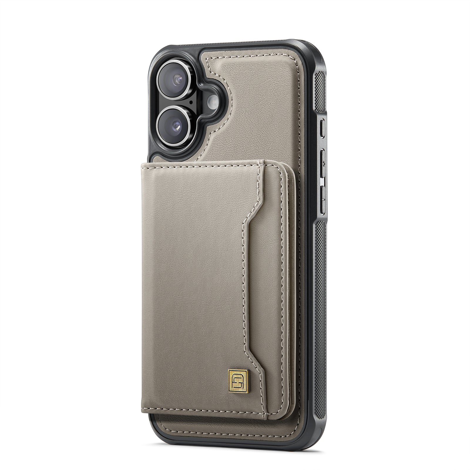 For iPhone 16 Plus Case AUTSPACE A13 Vintage Leather Back Cover with Magnetic Detachable Card Bag - Grey