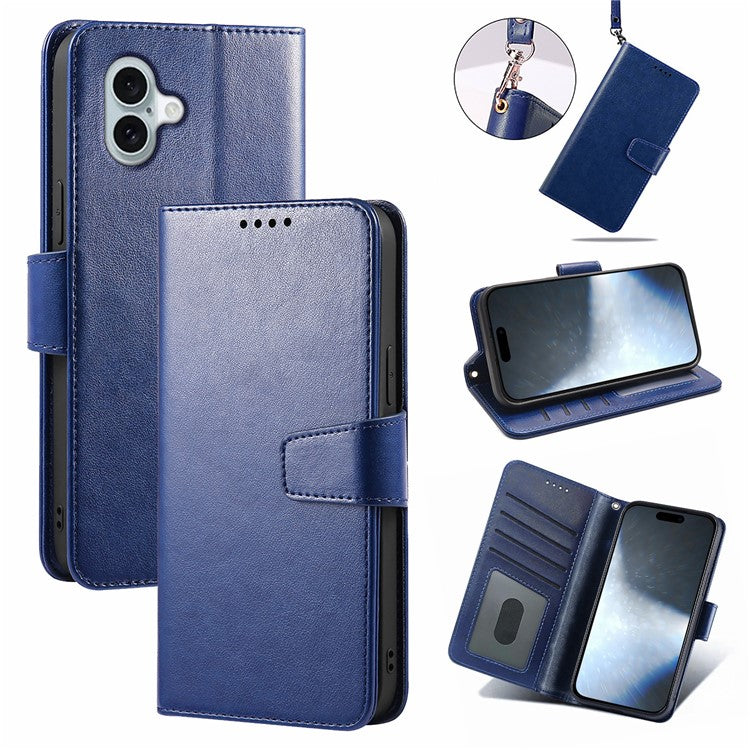 For iPhone 16 Plus Case Card Holder Wallet Leather Phone Cover Stand - Blue