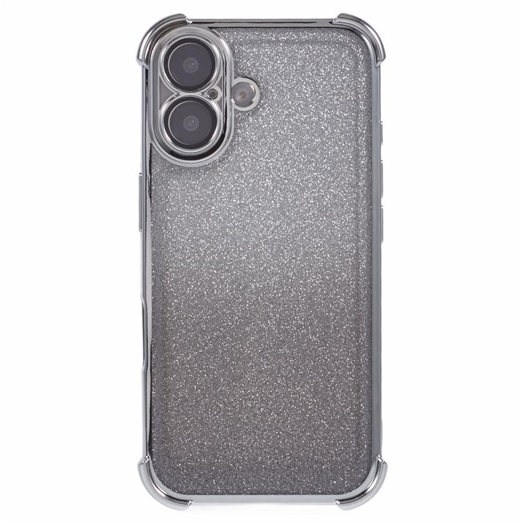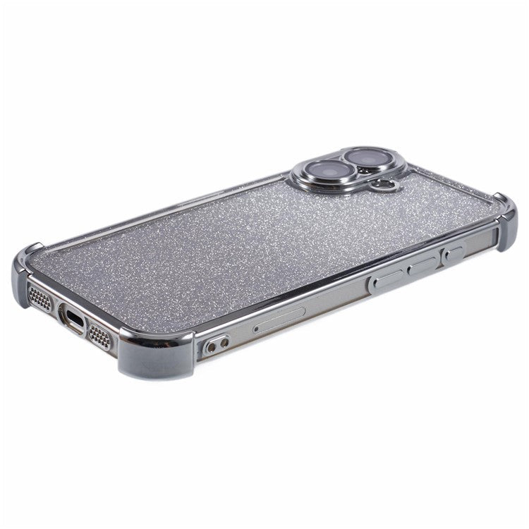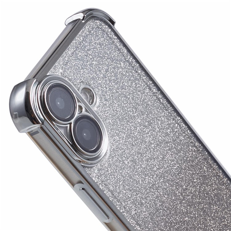 For iPhone 16 Plus Case Glitter TPU Phone Cover Reinforced Corners - Silver