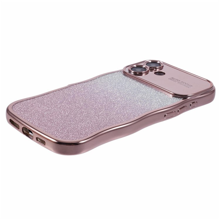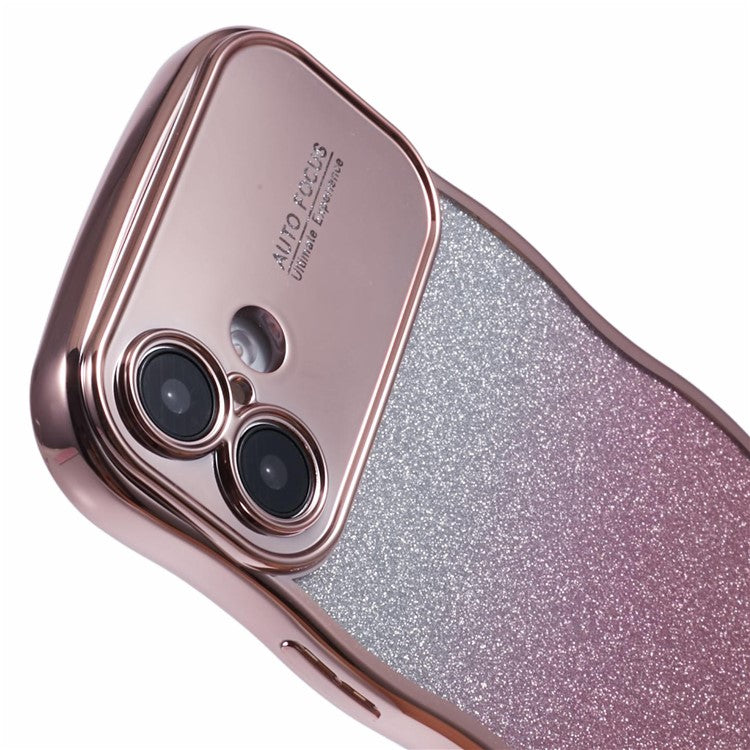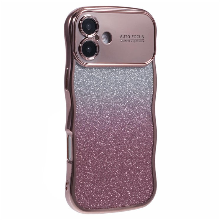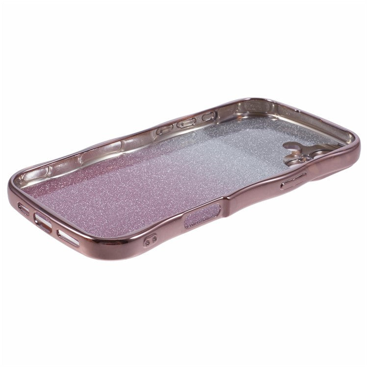 For iPhone 16 Plus Case Gradient Glitter TPU Phone Cover with Electroplating Curly Frame - Rose Pink