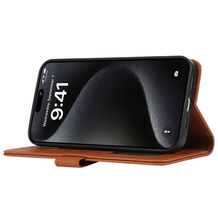 For iPhone 16 Plus Case RFID Blocking Flip Leather Phone Cover - Brown