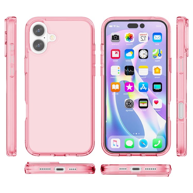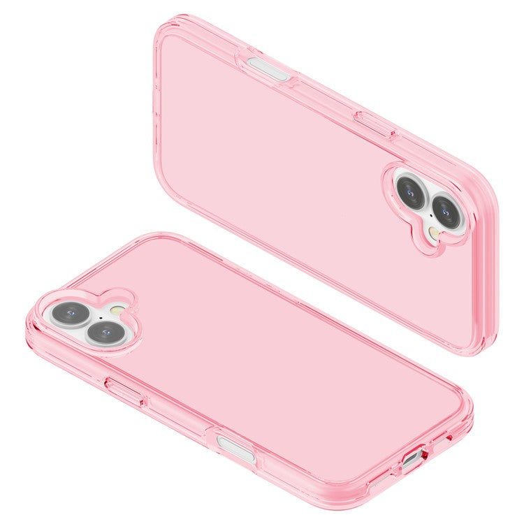 For iPhone 16 Plus Case Transparent PC + TPU Hybrid Phone Cover - Transparent Pink