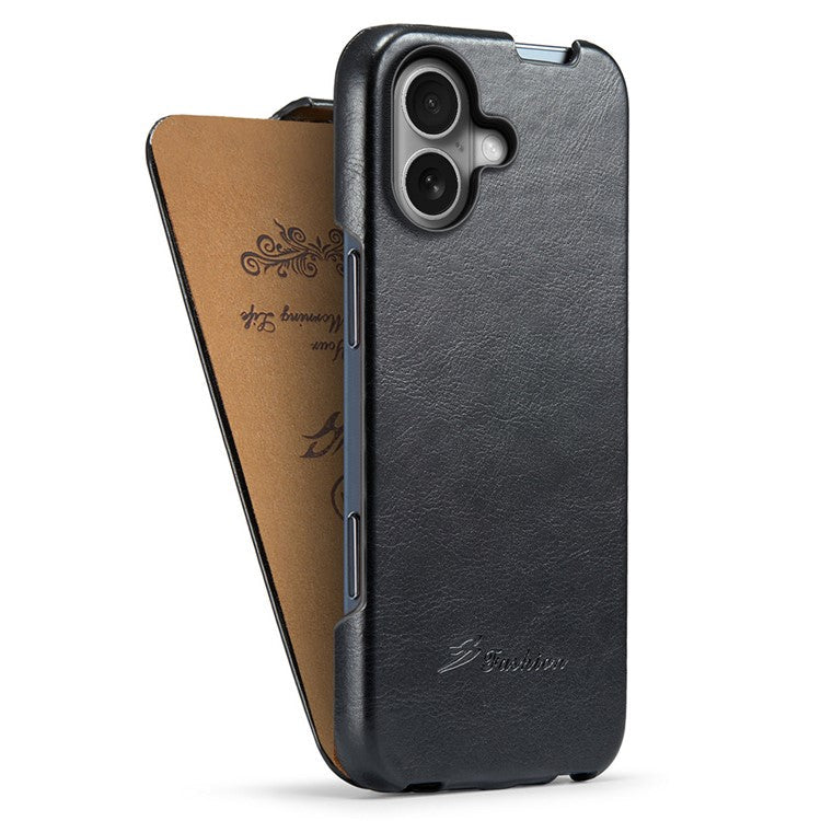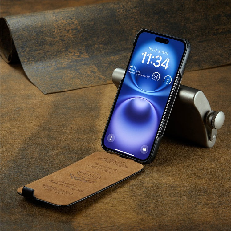 For iPhone 16 Plus Case Vertical Flip Leather Crazy Horse Texture Phone Cover - Black