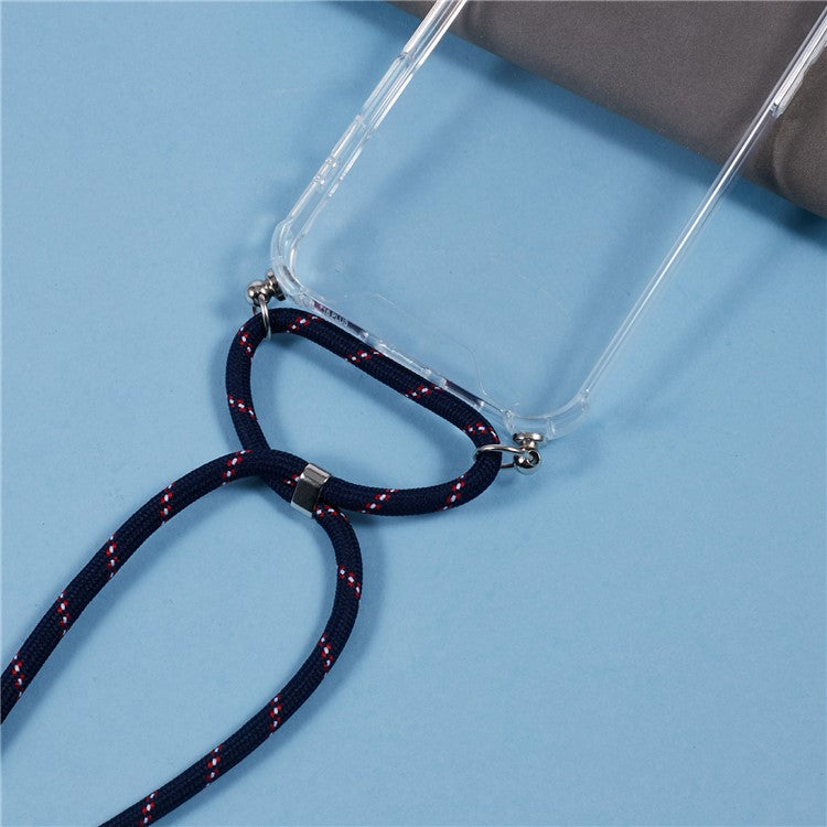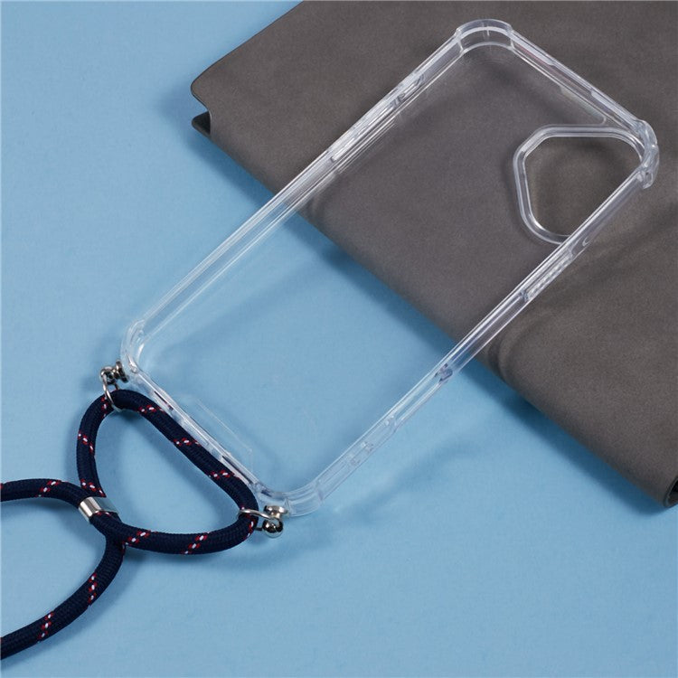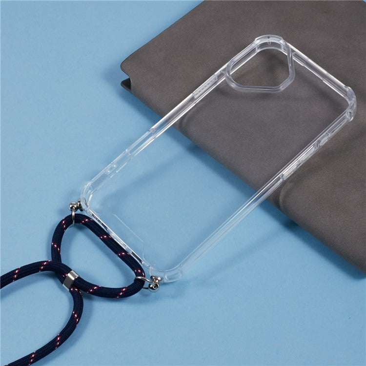 For iPhone 16 Plus Clear Case Acrylic + TPU Corners Shockproof Phone Cover with Lanyard - Blue+Red