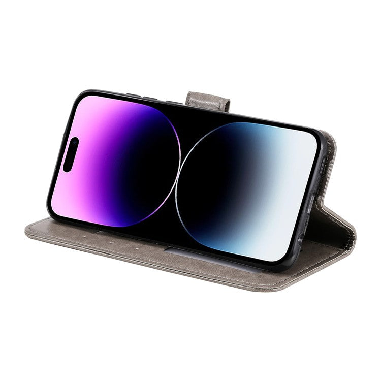 For iPhone 16 Plus Wallet Case Imprinted Totem PU Leather Stand Phone Cover - Grey