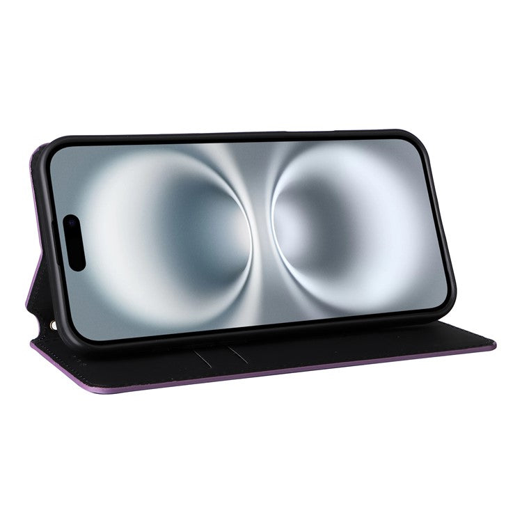For iPhone 16 Plus Wallet Case Rhombus Imprinted Leather Phone Cover - Purple