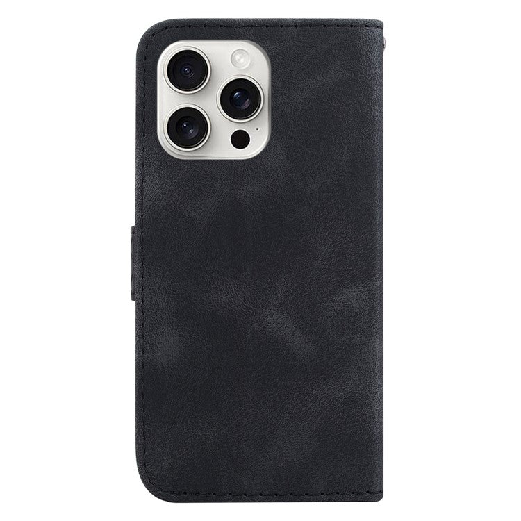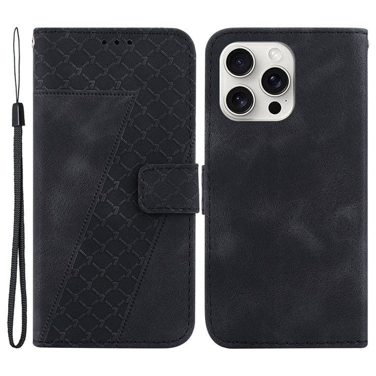 For iPhone 16 Pro Case 7-Shaped Pattern Leather Shockproof Phone Cover - Black