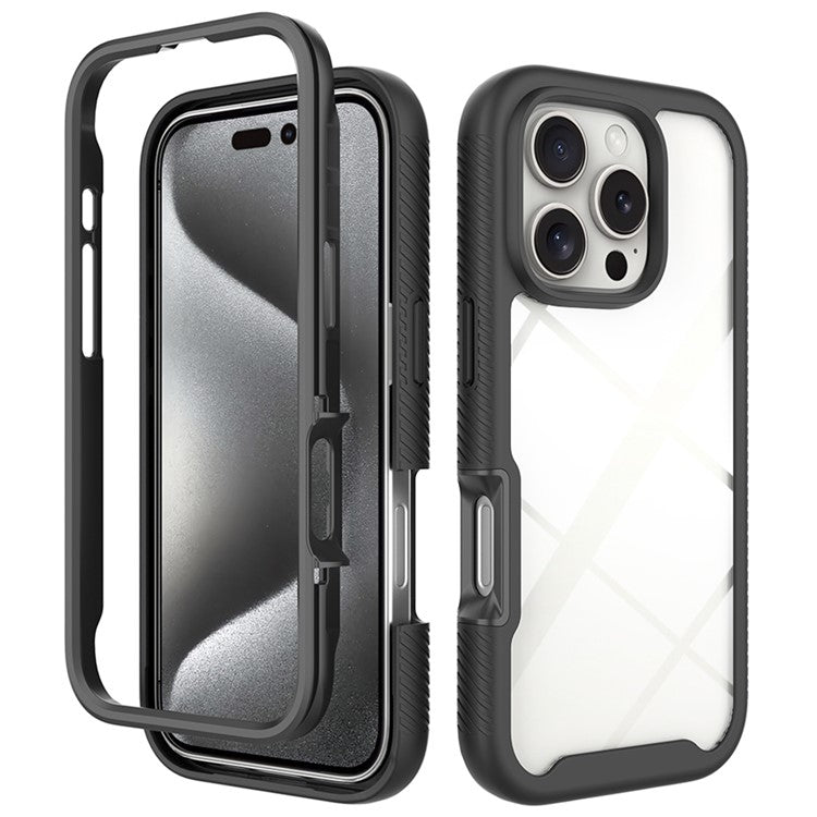 For iPhone 16 Pro Case Anti-Drop 2-in-1 PC+TPU Phone Cover - Black