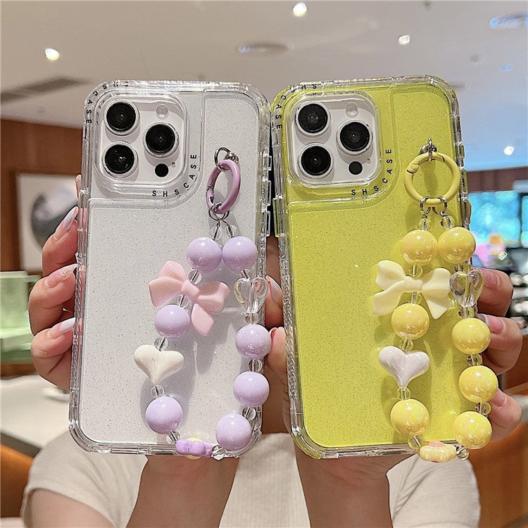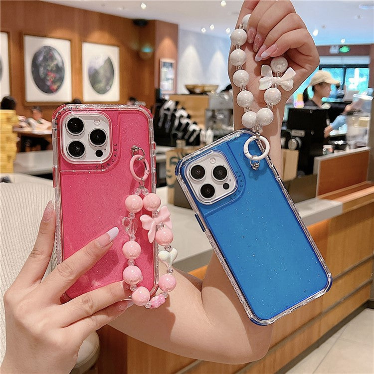 For iPhone 16 Pro Case Anti-Drop Glitter Design PC+TPU Phone Cover with Strap - Transparent
