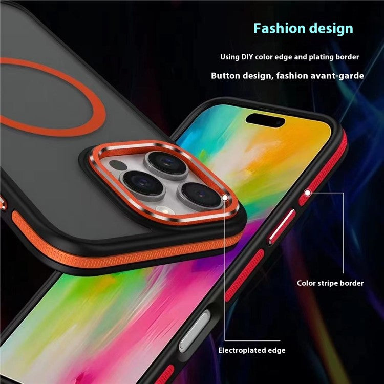 For iPhone 16 Pro Case Colored Edge PC+TPU Phone Cover Compatible with MagSafe - Purple