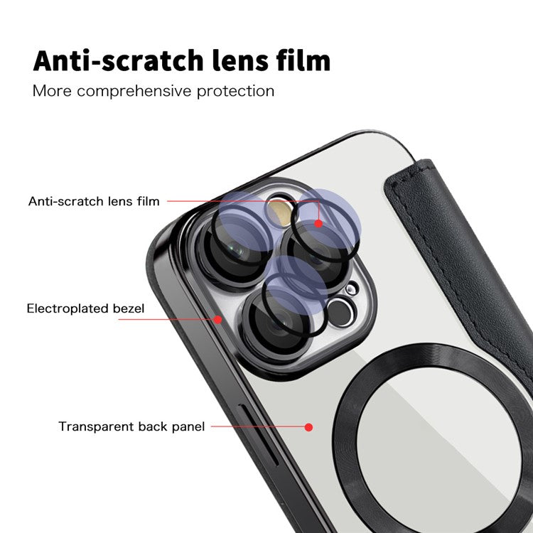 For iPhone 16 Pro Case Compatible with MagSafe PU Leather Card Slots Phone Cover - Black