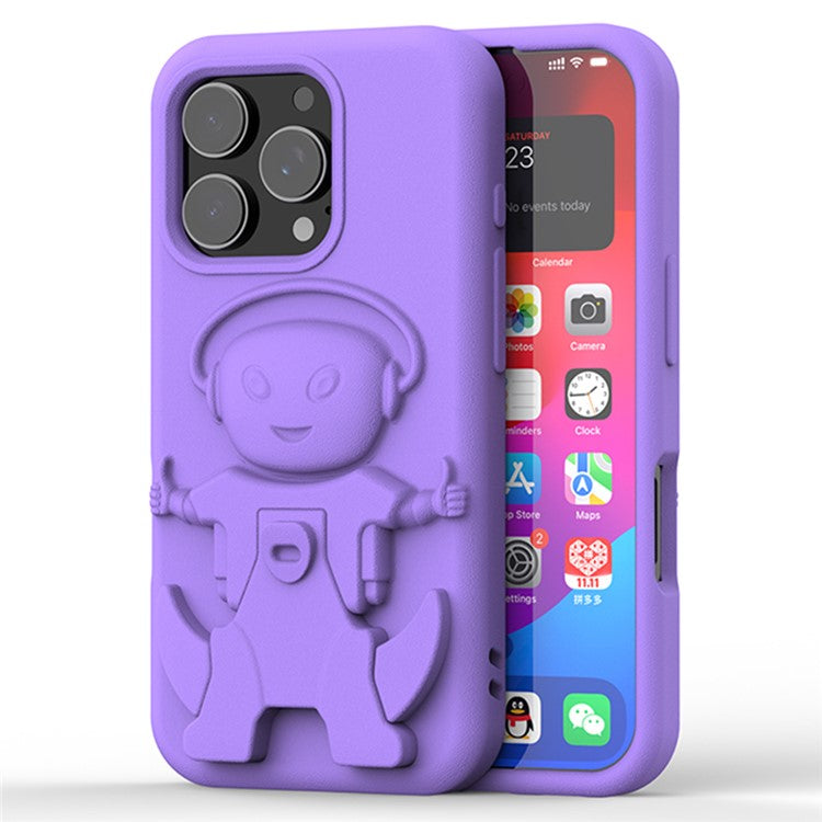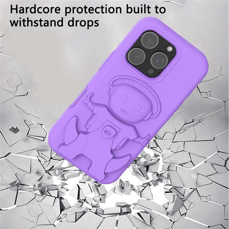 For iPhone 16 Pro Case EVA Mecha-Inspired Kickstand Shockproof Protection Cover - Purple