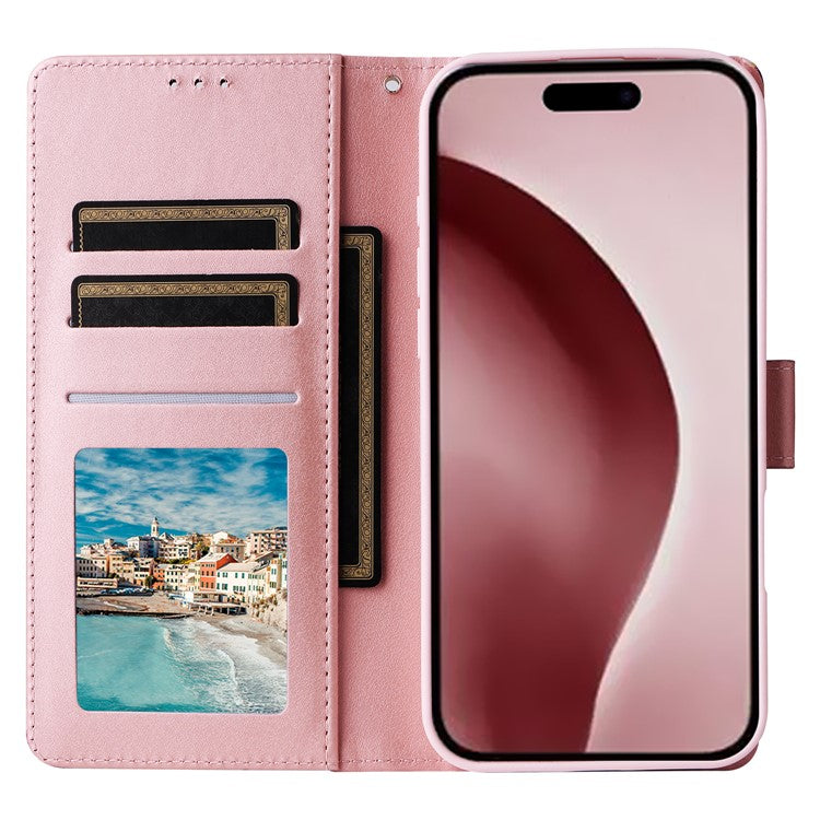 For iPhone 16 Pro Case Lacquered Leather Phone Shell Marble Pattern Design - Purple