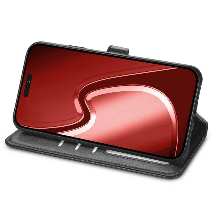 For iPhone 16 Pro Case Leather Phone Case Wallet Stand Cover with Wrist Strap - Black