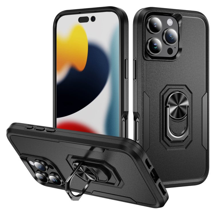 For iPhone 16 Pro Case Military Grade Ring Kickstand PC+TPU Phone Cover - Black