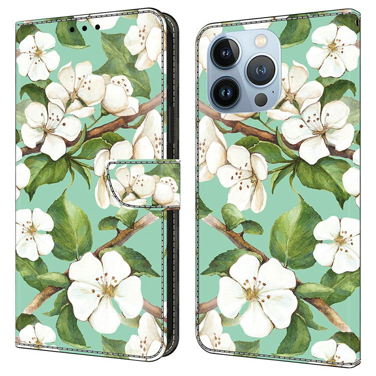 For iPhone 16 Pro Case Pattern Printing Anti-Drop Leather Flip Wallet Phone Cover - Watercolor Flowers