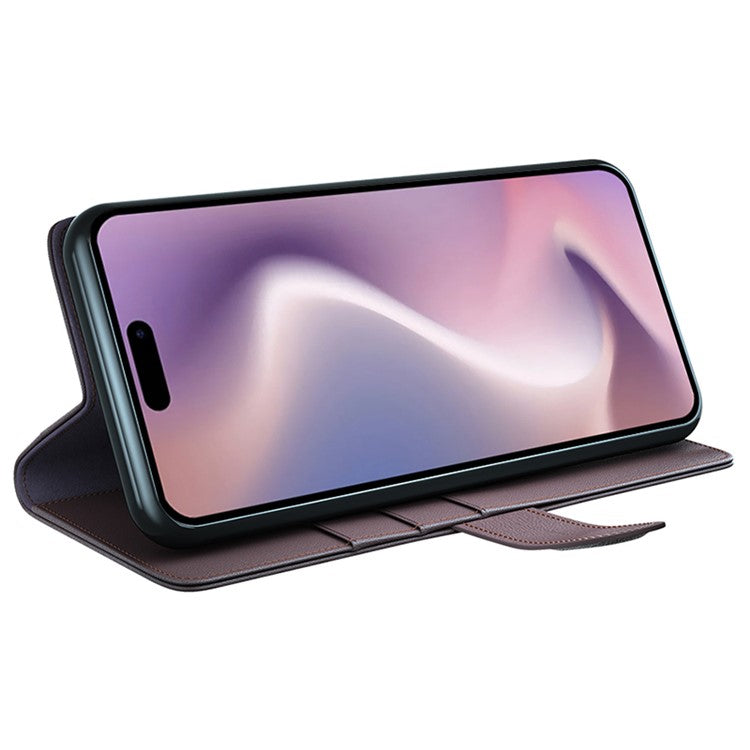 For iPhone 16 Pro Case Wallet Folding Stand Genuine Split Leather Phone Cover - Brown