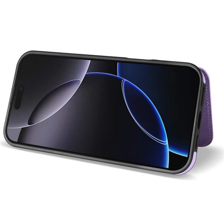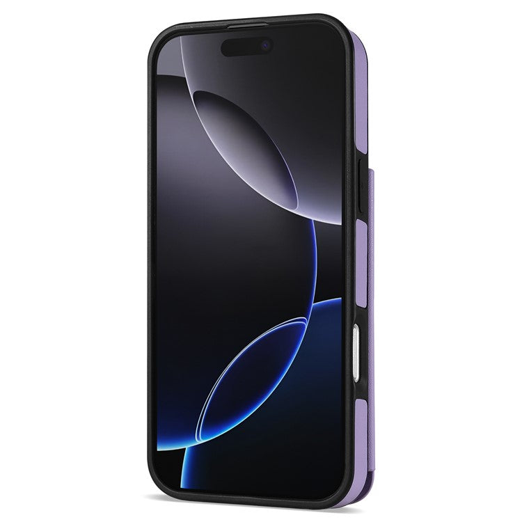 For iPhone 16 Pro Case with Wrist Strap Card Slots Rhombus Leather+TPU Phone Cover - Purple