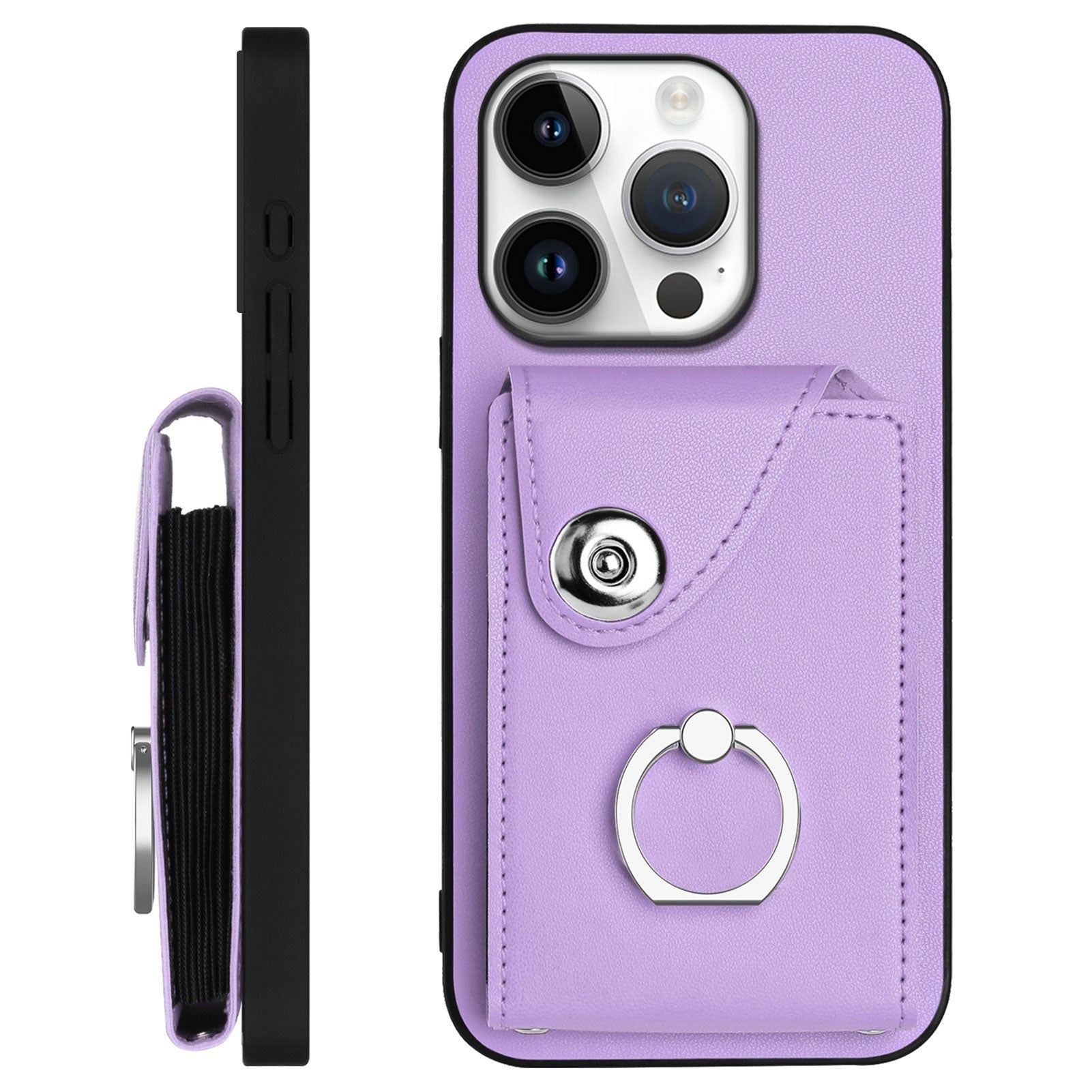 For iPhone 16 Pro Case YB Leather Coating Series-7 Card Holder Leather TPU Phone Cover with Kickstand - Purple